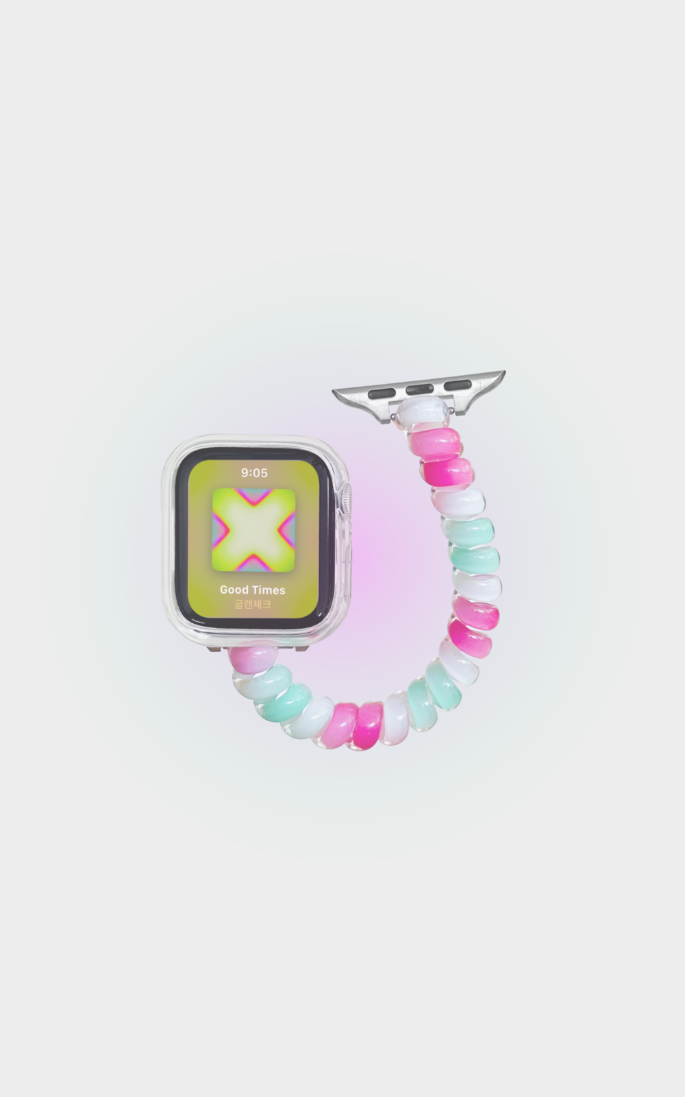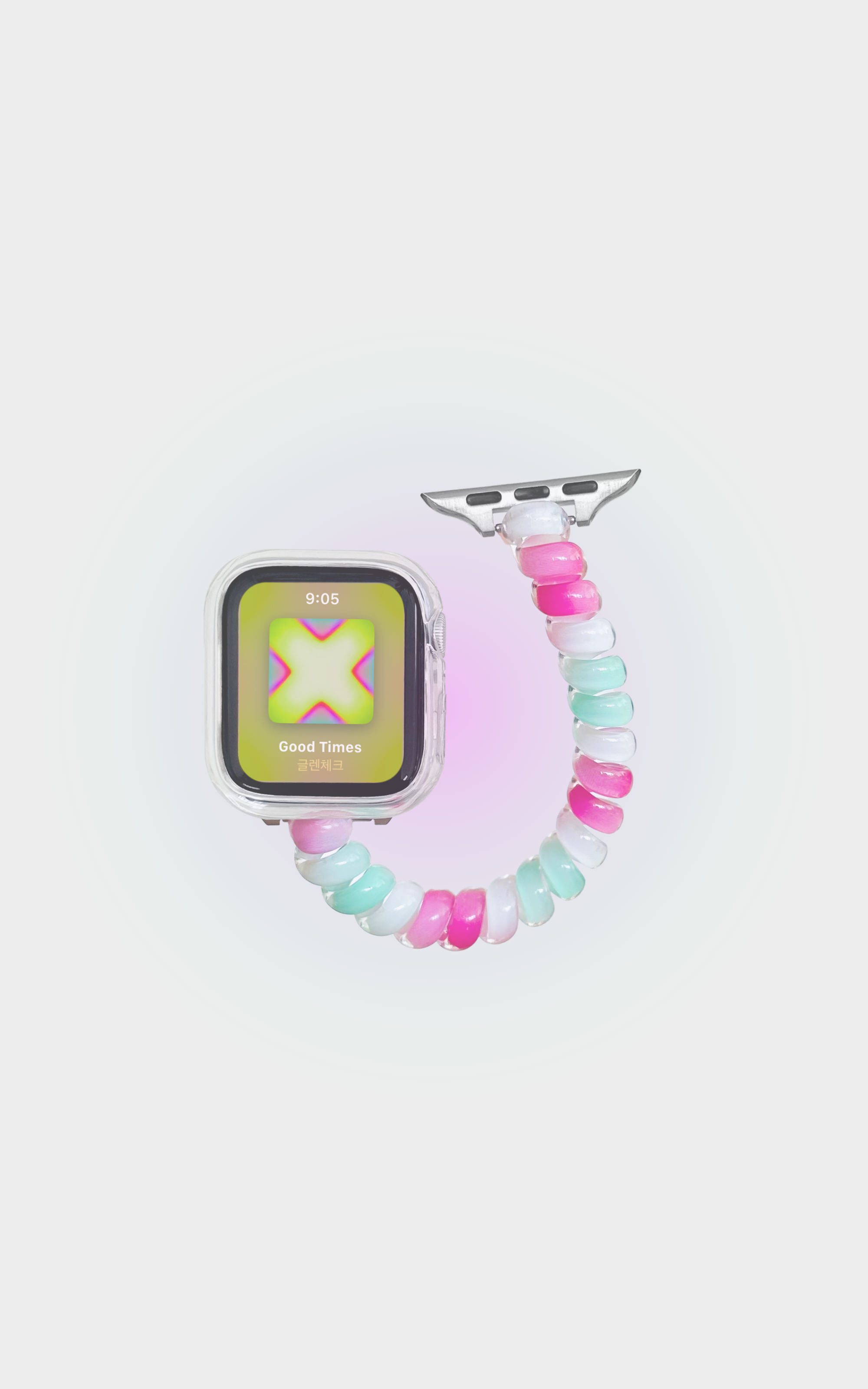 전화선처럼 말랑한 촉감이 손목에 가볍게 감기며, 땀이 차지 않아 쾌적하게 착용할 수 있습니다.